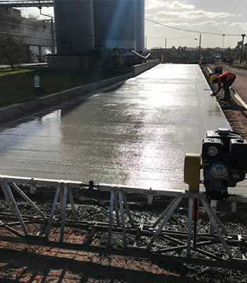 Contamos con maquinaria vial, camiones, mixer, camiones donde se realiza la mezcla de hormigón, regla niveladora láser y más.