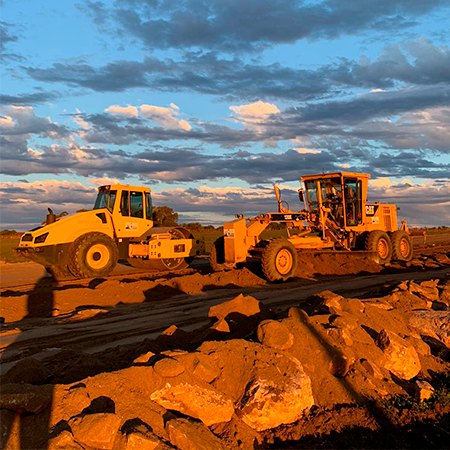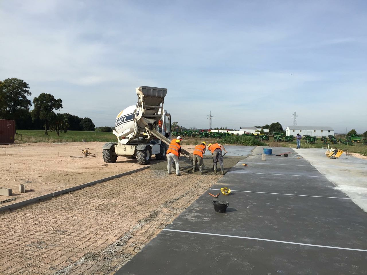 Contamos con maquinaria vial, camiones, mixer, camiones donde se realiza la mezcla de hormigón, regla niveladora láser y más.